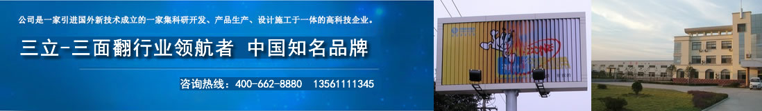 三立廣告設(shè)備有限公司是一家以及開發(fā)、設(shè)計(jì)、生產(chǎn)三面翻廣告牌和戶外廣告設(shè)備的生產(chǎn)企業(yè)。 目前公司擁有一套完善的現(xiàn)代化企業(yè)管理制度和獨(dú)具特色的企業(yè)文化機(jī)制,在倡導(dǎo)人性化管理,"以人為本"的經(jīng)營管理模式下,公司日益壯大,產(chǎn)品質(zhì)量不斷提升。